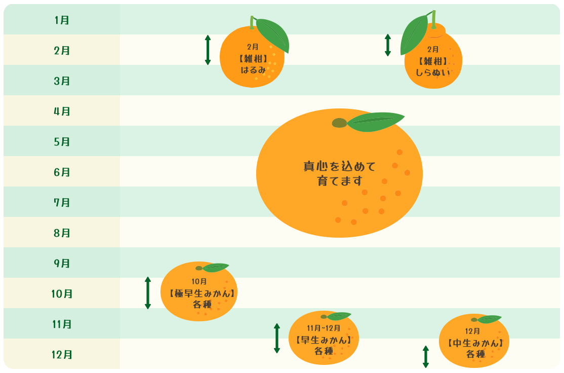 誰もが食べやすい極早生みかんなどのみかんやはるみといった雑柑をお届けいたします。