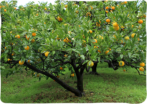 当農園では、木に栄養のある水や肥料や酸のオリジナル配合の有機肥料を使用。また、みかんの光合成率を高めることができるように努めております。酸素と糖をつくる光合成。より多くの糖が含まれるようにこだわって育てております。